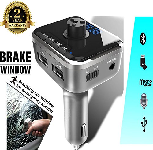 FM Transmitter Car Kit - Ybee Car Window Breaker Safety Hammer Wireless Bluetooth Music Player with Car Charger Radio Adapter Supporting Hands Free Calling│Voice Navigation│Input TF Card Slot