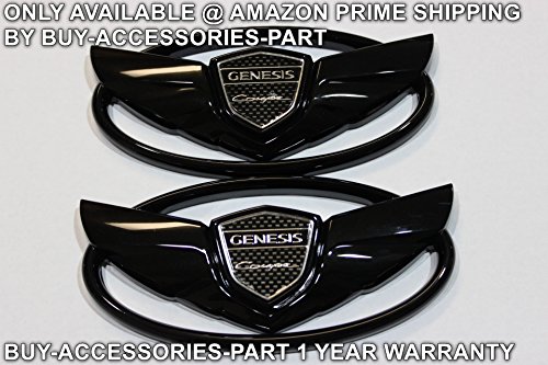 Buy-accessories-part© Genesis Coupe Emblem Set Kit Front Rear Trunk Grille Logo Badge KDM OEM Wing Hyundai 2010 2011 2012 2013 2014 2015 2016 2 Glossy Black