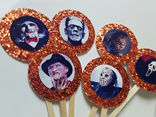 8 Horror Movie Cupcake Toppers Halloween Frankenstein Friday the 13th Classic Birthday Monster Party Favor