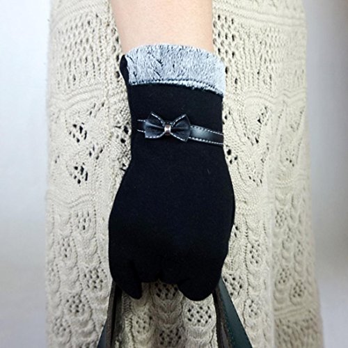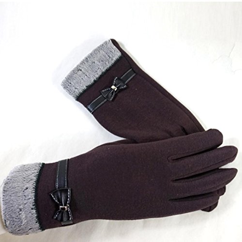 (DEESEE(TM))/Accessories/Cold Weather Accessories/DIRECT FROM USA/DEESEE(TM) Women Winter Warm Bow Fur With Velvet Driving Full Finger Touch Screen Gloves