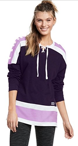 -. Title : Victoria's Secret Pink NEW Oversize Lace Up Varsity Crew Plum Purple (XSmall)