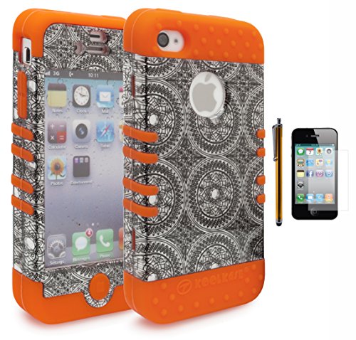 -. Title : iPhone 4 Case, Bastex Heavy Duty Hybrid Case-Orange Soft Silicone Gel Cover with Silver Antique Circles Design Hard Plastic Case For Apple iPhone 4, 4g, 4s 4gs+Screen Protector+Stylus