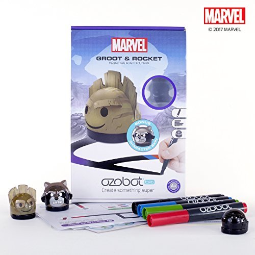 Ozobot puts you in command of the galaxy’s favorite dynamic duo. Getting started is simple: pull out your markers and draw lines and color codes. Then watch your Guardian bring your drawings to life. Use color codes to complete over 20 drawing activities and keep Rocket and Groot of trouble, learning the basics of coding as you go!