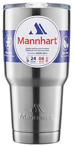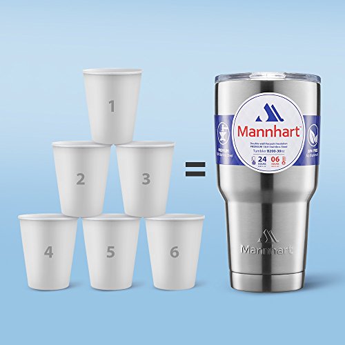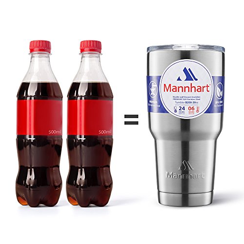 Mannhart Stainless Steel Travel mug 30oz(887ml) large capacity tumbler allows you to stop refilling it. EASY-Grip design for both Men and Women.