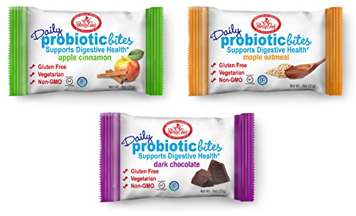 Betty Lou's Probiotic Daily Bites Dietary Supplement For Kids & Adults, VARIETY PACK (Apple Cinnamon, Maple Oatmeal & Dark Chocolate), 25g Bars (Pack of 12)