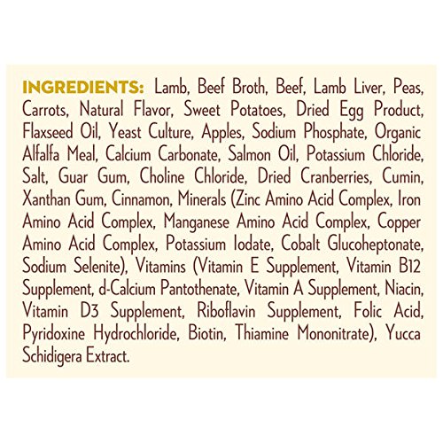 Grain free loaf recipe with lamb, fruits and vegetables packaged in right-sized portions for small breed dogs