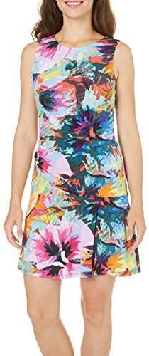 Product DescriptionPixel bloom ruched jersey fit and flare dress sleeveless scoop neck0