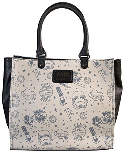 This Tote features top zip closure, interior zipper, side pouch pocket, and is fully lined inside. Measures: 13" X 12.5" X 5" Authentic Licensed Star Wars product , Manufactured by Loungefly Brand : Loungefly MPN(PartNumber) : STTB0003 EAN : 0744881806084 Product Dimensions(LxWxH) : 34x32x13cm ; 635 g