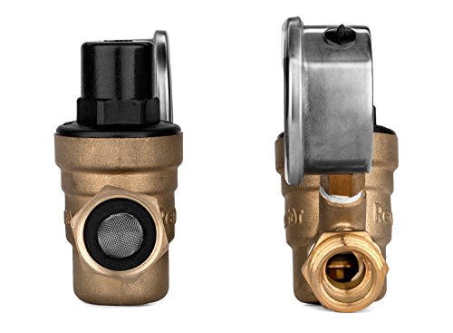 Renator M11-0660R Water Pressure Regulator. Brass Lead-free Adjustable Water Pressure Regulator with Gauge for RV, and Inlet Screened Filter