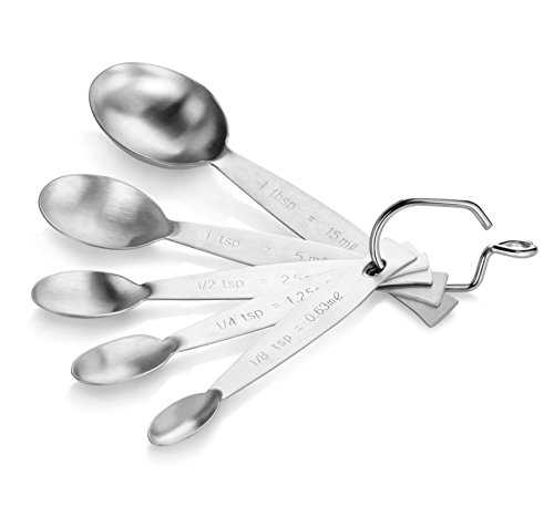 New Star Foodservice 43129 Stainless Steel 18/8 Measuring Spoons (Set of 5), Silver