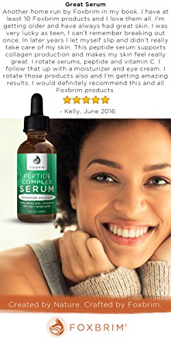 Safe For All Skin Types - Foxbrim's Peptide Complex Serum was crafted with the most sensitive of skin types in mind. With natural moisturizing agents, you'll find this serum to provide results without the worry of drying or irritation. Perfect for dry and under-nourished skin. For that healthy, natural glow