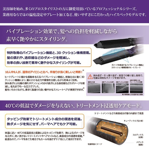 【商品名】業務用ヘアアイロン(コテ) 「ブルケア」 ストレート/カール2WAY仕様 海外対応 バイブレーション機能