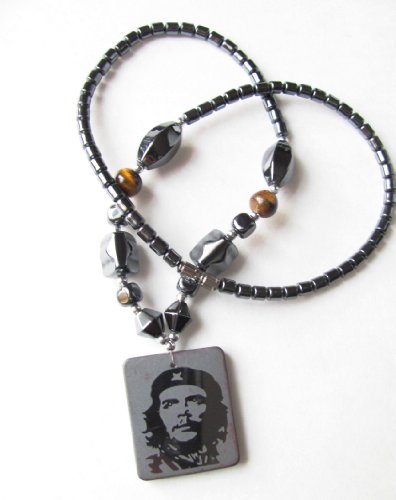 (Gifts by Lulee, LLC)/Wellness Relaxation/Alternative Medicine/DIRECT FROM USA/Healing Hematite Necklace with Che Guevara Pendant Available with Tigereye, Black Crystal, Moon...