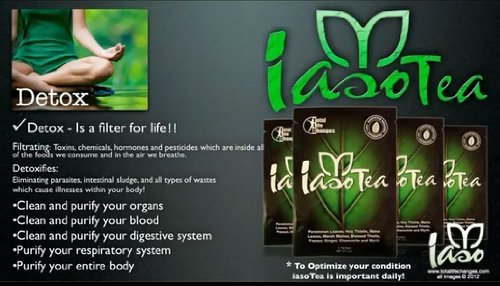 IasoTM Tea is a flavored tea obtained from all natural sources. It's formulated to cleanse your intestines and detoxify your entire body while helping you lose weight! Our special blend is designed for those with sensitive systems, adding known ingredients that provide a calming effect on the upper and lower intestines. IasoTM Tea offers a unique blend of all-natural ingredients. Just 8 ounces of this mild tea twice daily can provide you with dramatic results. Find out why some have even called this amazing drink "a miracle" tea.