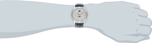 -. Feature : Black, genuine clafskin leather strap / Silver-sparkling dial with 12 genuine crystal hour markers / Beaded bezel adorned with six crystals / Subdials feature the day, date, gmt and mood phase / Water resistant to 165 feet (50 M): suitable for swimming and showering