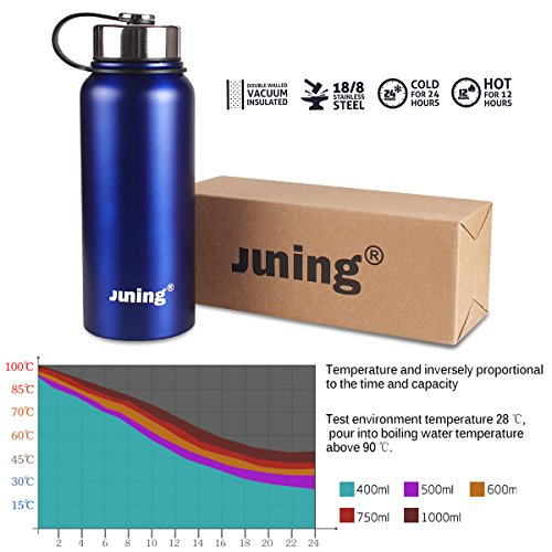 Stainless Steel Water Bottle Double Wall Vacuum Sealed 32 Oz by JUNING
