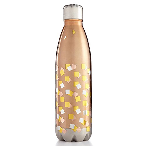 - This water bottle is rose-gold tone with metallic square details