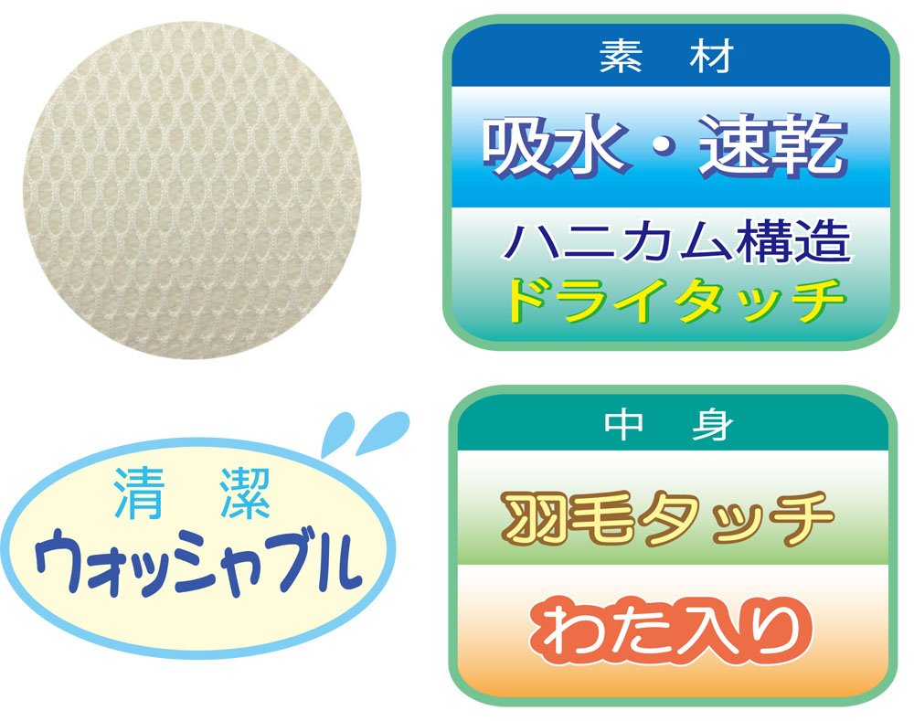 【Feather Touch】 Contents are silicone coating processing, using TEIJIN CRYSTER ECO with fluffy feather touch.