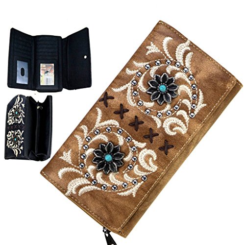 -. Title : Montana West Floral Embroidery Secretary Style Wallet w/ TQ Accent- Brown