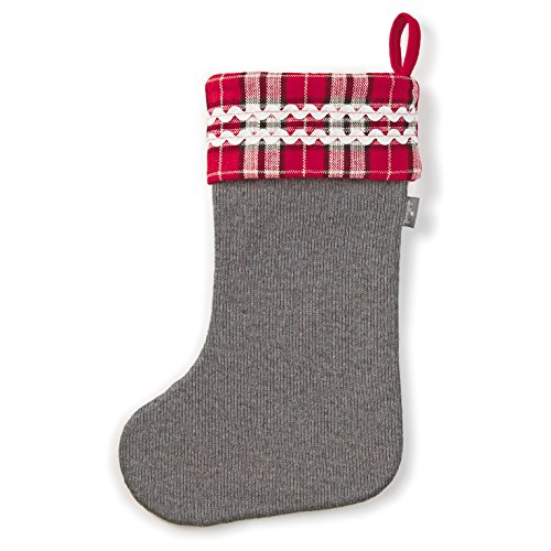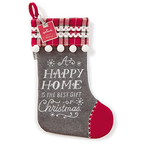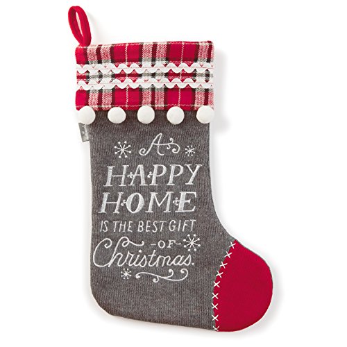 Hallmark Holiday Home Decor "Happy Home" Embellished Stocking with Sentiment, Gray/Plaid