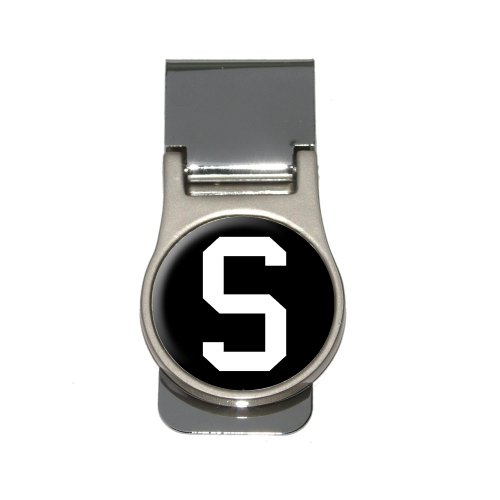 -. Feature : Add a dose of coolness to your clipped bills! / Super durable hinged sP.R.Ing money clip / Mirror and satin chrome-plated metal / Approximately 2.25" x 1.1" in size