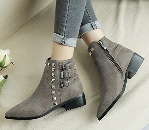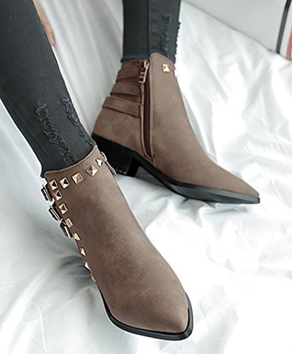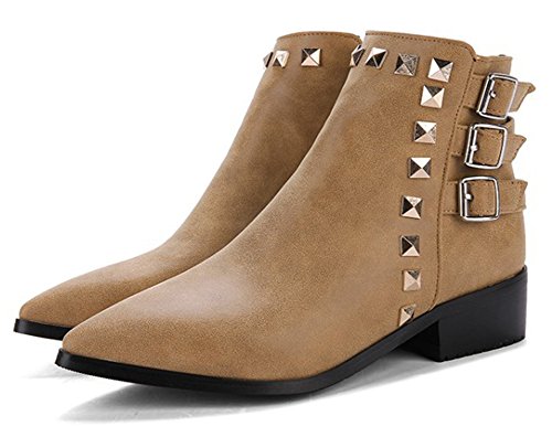Binding : Apparel Product Description The fall comes, and it is time for elegant women to wear various boots. A pair of suitable boots can add much charm to you. Here is a pair of pretty booties for you. They adopt pointed toe design, which can embellish your foot type better. The chunky low heels make them very sexy to wear. The zipper closure is so convenient, stylish and artistic. The outsoles are made of rubber, wearproof and non-skid. They have no many decorations, which conveys an idea of simpleness. In addition, they are easy matching. Welcome to choose and buy! Aisun is the legal brand, registered in the United States Patent and Trademark Office. All rights reserve 0