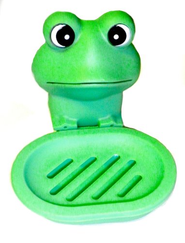 -. Feature : The removeable drain tray design makes it easy to clean & will allow you to use it not only for a soap holder, but you could also use it to hold jewelry such as your rings, loose change or trinkets, / The 3 suctions cups on the back make is super easy to install on a tile bath, a glass shower door, or even the bathroom mirror. / You could also easily remove the suctions cups and attach it to the wall with either nails or screws (not included). Or, just sit him on the counter. / The frog is made of plastic. / From the top of the frog's head to the bottom of the dish, it measures approx. 4-1/2" H x 5-1/4" W x 4" D.