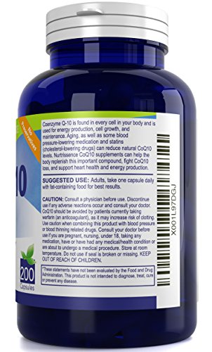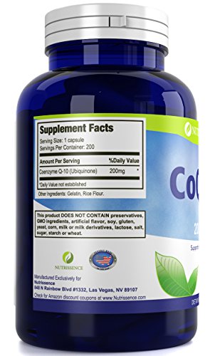 Nutrissence CoQ10 200mg contains no preservatives, gluten, wheat, lactose, milk, artificial flavor or sweetener, yeast, fish, or sodium. Manufactured in the USA in an FDA approved facility following cGMP guidelines.