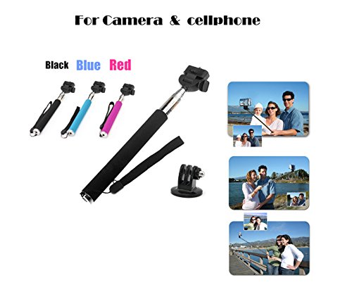 Apexel Extendable Self Portrait Selfie Handheld Stick Monopod with Tripod Mount Adapter for Gopro Hero Camera HD 1 2 3 3+ Red