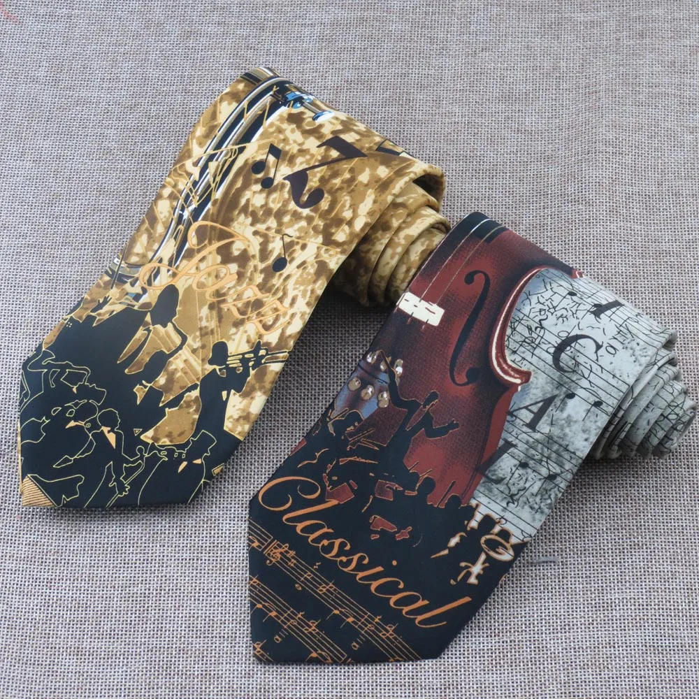 Material: Polyester Feature: printing tie music staff cello bass instruments big head necktie