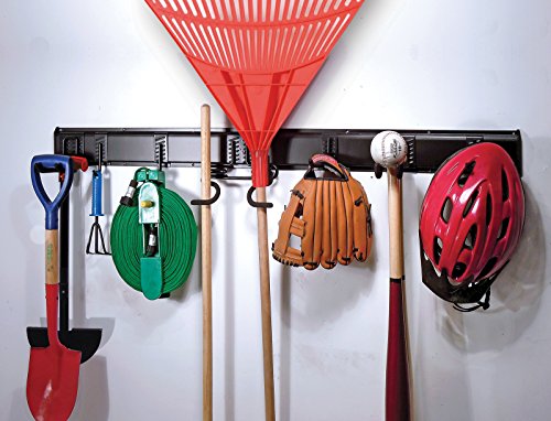 Includes (2) 24Hang rails, 1 dual 's' hook for items with long handles, 2 multi-purpose straight hooks, 2 small 'J' hooks, 1 double scoop hook, and 1 double prong power tool holder