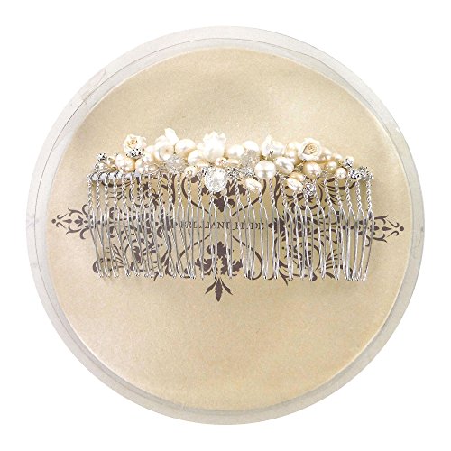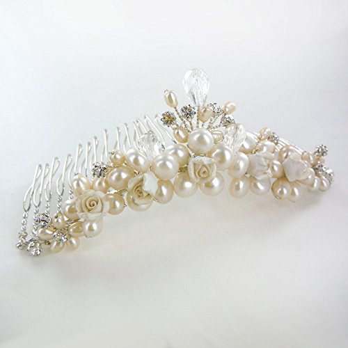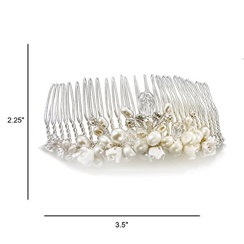 Bridal Wedding Hair Comb Handmade Silvery With Austrian Crystal, Pearls and Baby Rose Buds (8700)