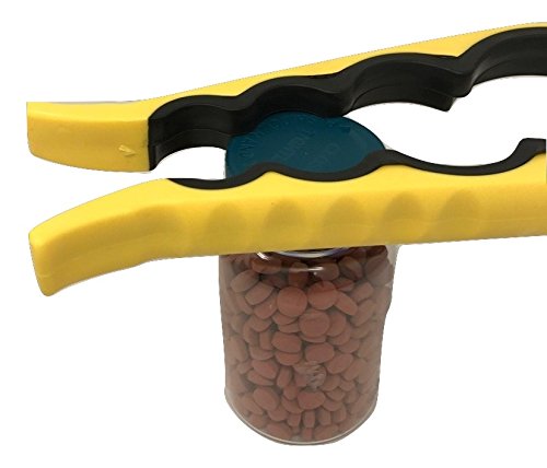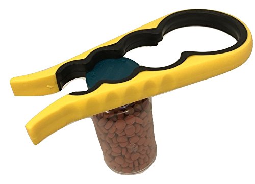 -. Feature : Will remove stubborn, hard to open lids and caps easily. / Great for kids, adults, and the elderly. Also a great gift! / A Great solution for those with limited hand strength, arthritis, or limited hand mobility / Dishwasher safe and easy to store / Will open 8 different-sized lids easily. May come in blue or yellow.
