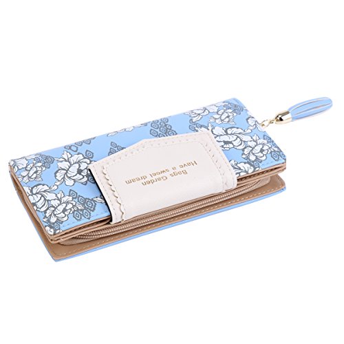 Binding : Apparel Product Description Safely carry your personal info while you travel with this safe bifold wallet.It is made of faux leather and features flowers printed exterior.The snap closure to multiple 11 card slots for your credit cards or bank cards,1 photo window,3 bill site compartments perfect for holding your money, receipts, checks,or other loose papers,and a back top zipper pocket with two compartments.Measurement is app 19.5x9.5x3cm(7.67x3.74x1.18inch). 0