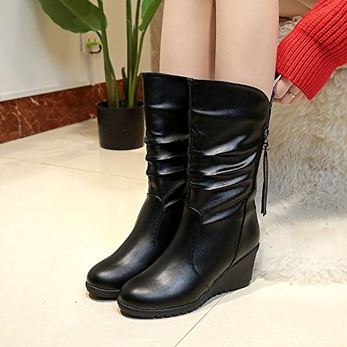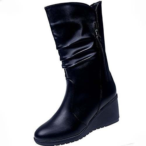 (ZHZNVX)/Women's/Boots/DIRECT FROM USA/HSXZ Women's Shoes PU Winter Comfort Boots Wedge Heel Round Toe for Casual Black
