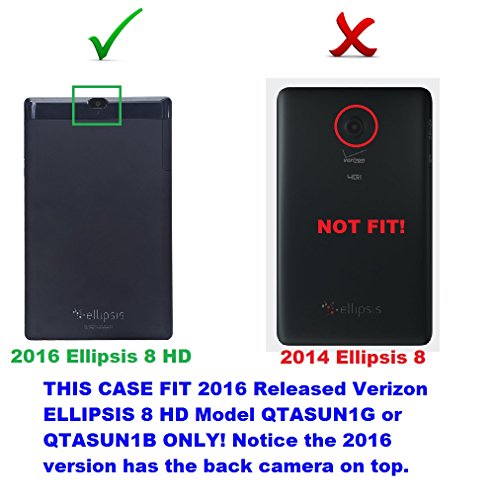 Ellipsis 8 HD Case, i-UniK 2016 Verizon Ellipsis 8 HD Tablet Case Support Sleep Awake Function Model #QTASUN1G/QTASUN1B Cover [Bonus Stylus] (Black)