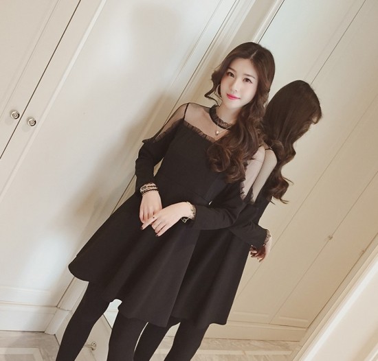 ドレス ワンピース 膝上丈 オフショルダー風 可愛い パーティー 華やか drgz1509