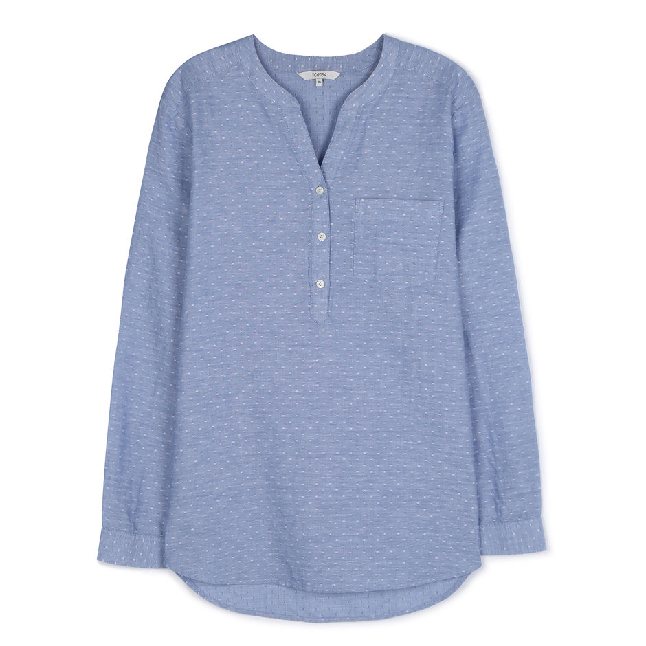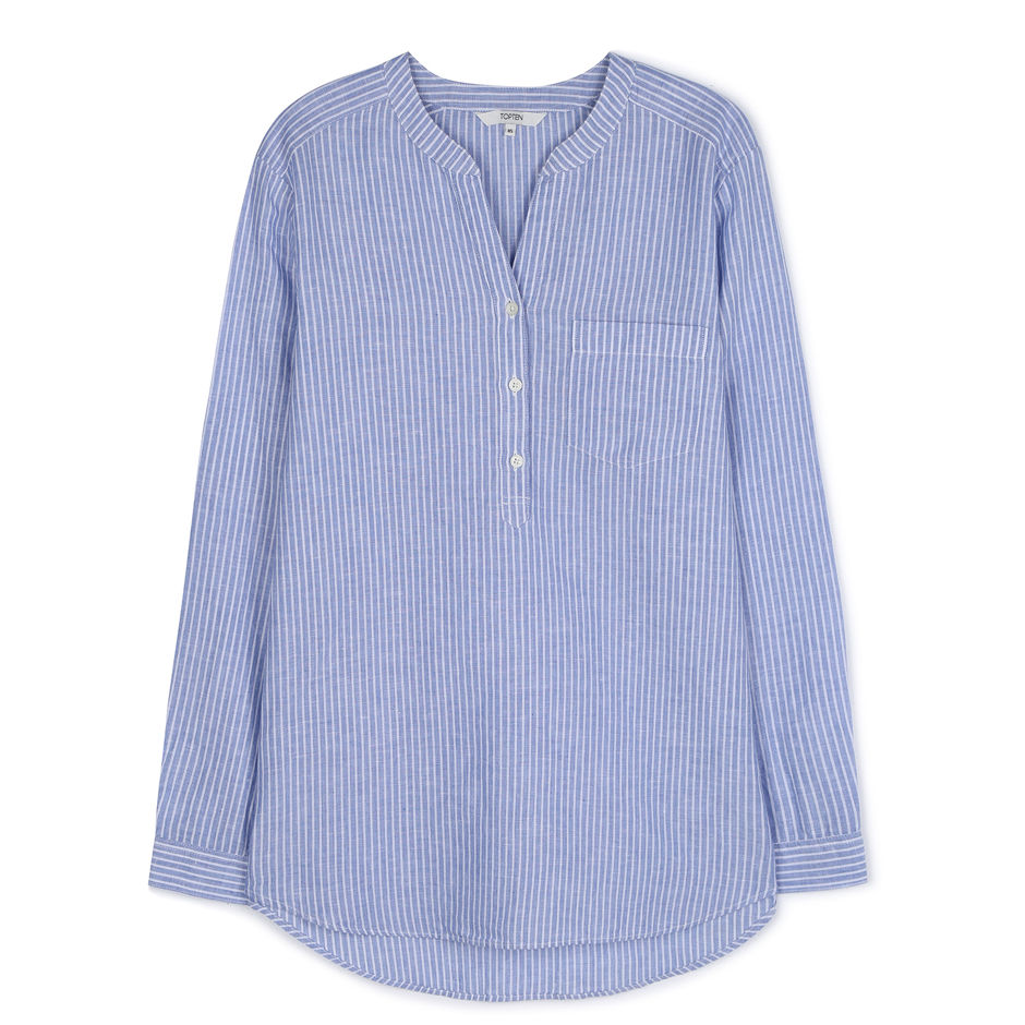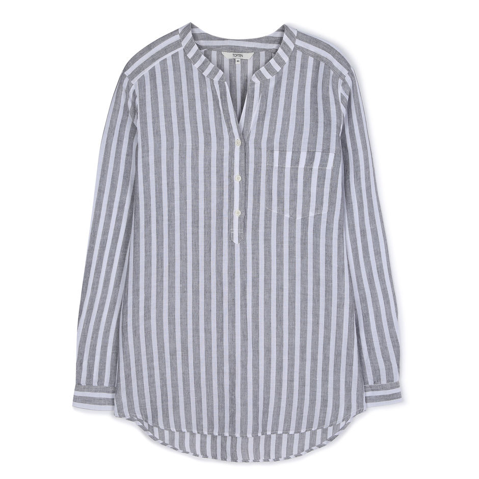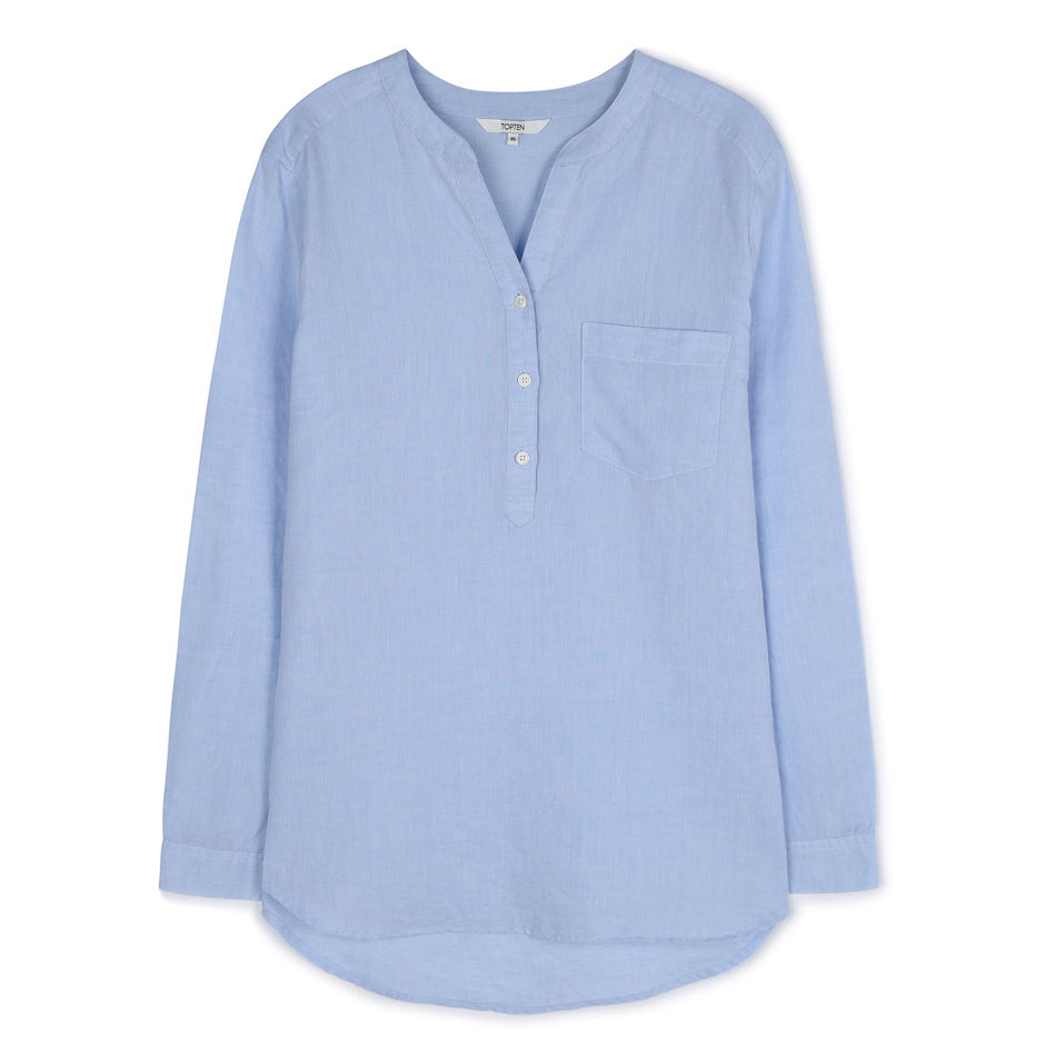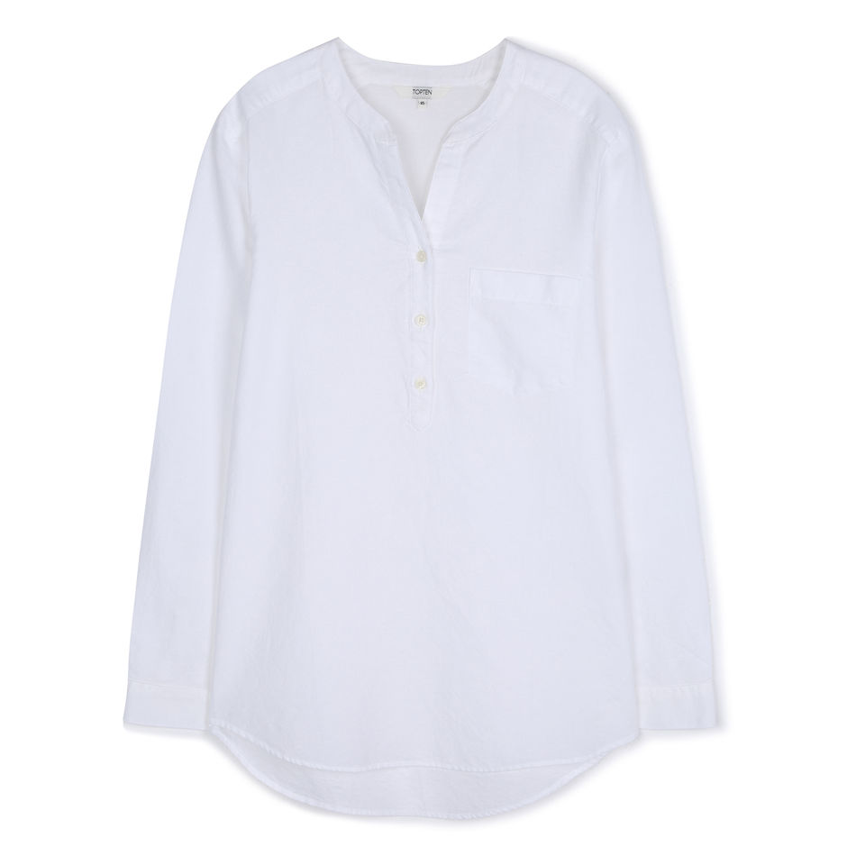 여성) 리넨 헨리넥 루즈핏 셔츠