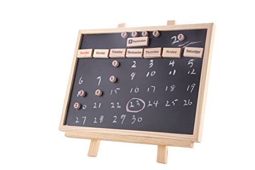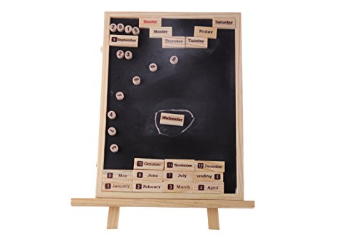 - Feature : Built strong and sturdy on a wooden easel stand and magnetic for the ultimate convenience / Easily write and erase messages, notes, calendars or anything you might need / Set includes every 12 months, 7 days, two of each number 0-9, and 3 different color chalk / Convenient and a classic design looks good in any room / Dimensions: 10.1 x 7.1x 8.1 inches