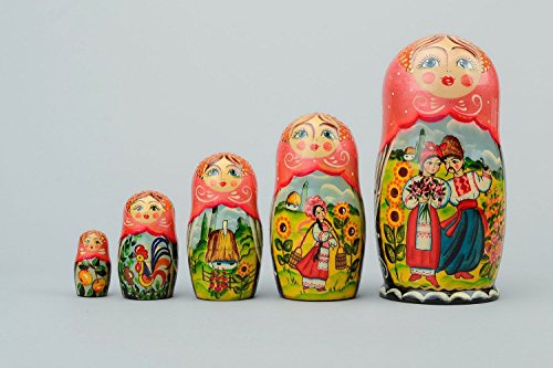 -. Feature : DETAILS - Handmade matryoshka doll will be a pleasant wedding gift. It consists of 5 pieces and is cut by hand from basswood. Its surface is patterned with the use of acrylic paints. The product is coated with polyurethane varnish. /