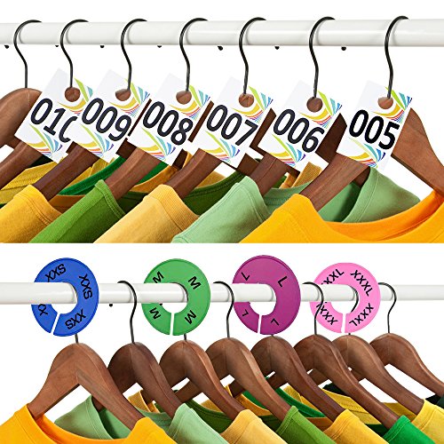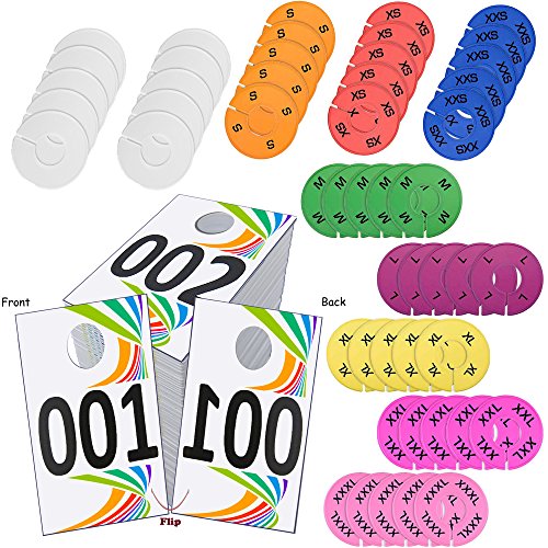 INCLUDES: Plastic Live Sale Number Tags, Coat Check Number Tags (Consecutive Numbers 1-100) / 50-Piece set of Plastic Hanger Size Dividers (XXS - 3XL + 10 Blank Dividers)