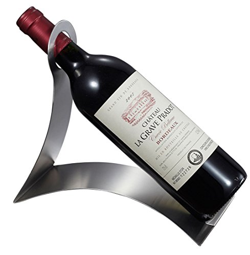 - Curved, modern design; place wine bottle neck through opening and rest end of wine bottle on edge of bottom