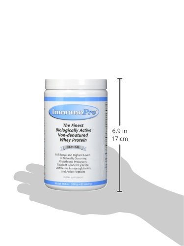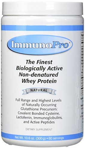 ReleaseDate : 2017-03-11 Studio : Nutricology Publisher : Nutricology Binding : Health and Beauty Product Description ImmunoPro® is a biologically non-denatured whey protein containing high levels of lactoferrin, immunoglobulins, active peptides and growth factors. It contains an exceptional amount of covalent bonded cysteine, the critical precursor for the production of glutathione. ImmunoPro® is not a by-product of cheese manufacture, which denatures the whey protein components. It is GMO-free, and is from hormone treatment-free, disease-free, pesticide-free, chemical-free, natural grass pasture-fed cows.;Suggested use: Add to water, milk, semi-liquid dairy products or a dairy substitute. You may use a container to shake it, or an electric blender on low speed for a short duration and there will be no damage to the proteins. Liquids may be cold or room temperature - do not use hot or warm liquids above body temperature. If possible drink slowly and let it circulate in the mouth before swallowing, to promote the uptake of the native protein peptides. As an alternative, one may place a small amount of the powder directly in the mouth, 1/2 teaspoon, as often as desired and chew slowly. 0