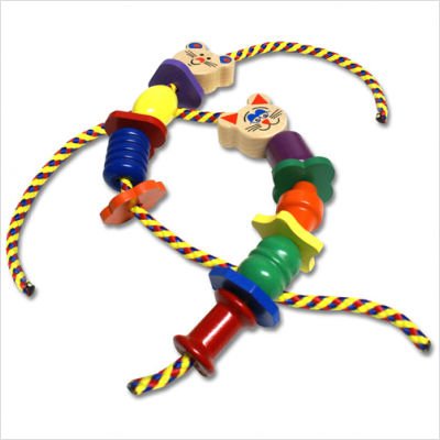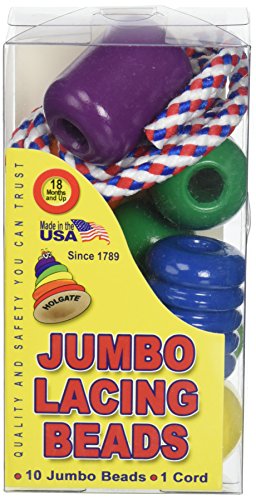 Studio : School Specialty Publisher : School Specialty Binding : Misc. Product Description A classic Holgate toy first introduced in 1948. toddlers will enjoy hours of stringing and stacking these jumbo lacing beads. large size helps tiny fingers develop manual dexterity and eye-hand coordination. Set includes 9 beads in bright, non-toxic colors and one 28" cord. Selected by Parents Magazine as Best Toy. Made of 100% natural kiln dried hardwoods and non-toxic paints. Our products will not warp, split or splinter. Beads measure: 2" long x 1-1/4" wide. Ages 18 mos - 4 yrs. 0