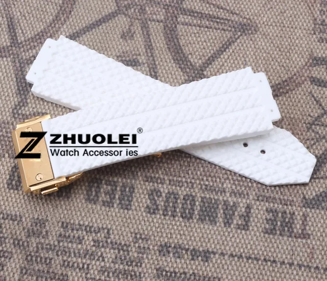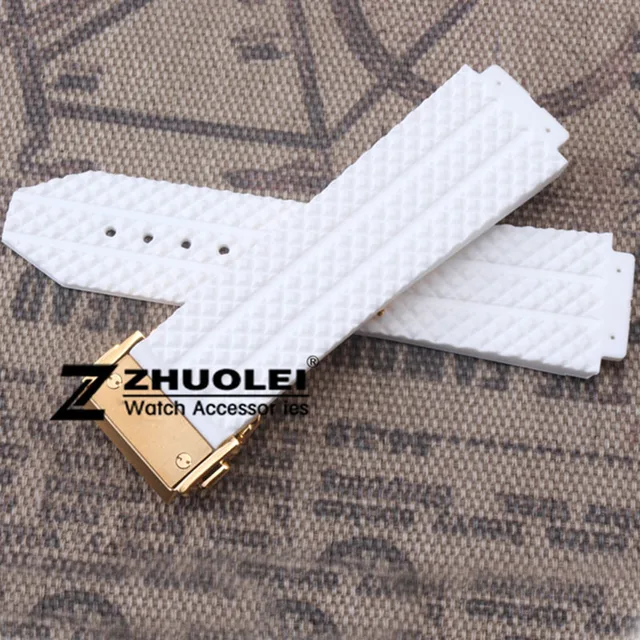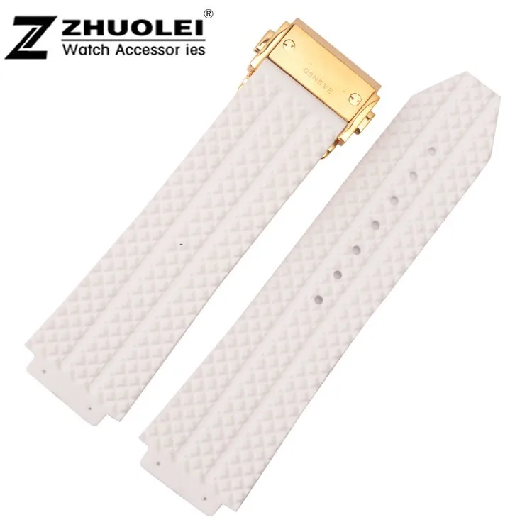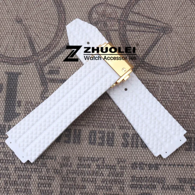 | [해외] 25*19 미리메터 새로운 남성 화이트 다이빙 실리콘 고무 시계 스트랩 시계 줄 골드 스테인레스 스틸 시계 Depolyment 버클 |
