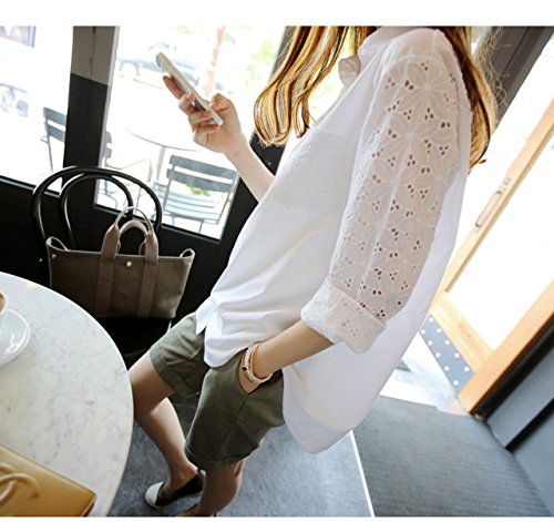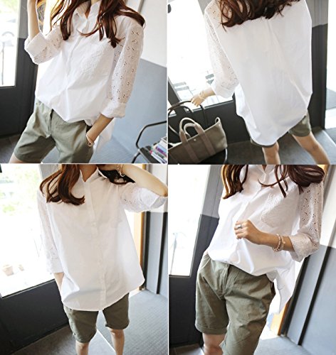 -. Title : (ココチエ) kokochie 白シャツ レディース おしゃれ オフィス レース 刺繍 長袖 綿 カジュアル