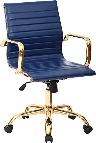 -. Title : Office Star Work Smart Faux Leather Mid Back Arm Chair in Navy