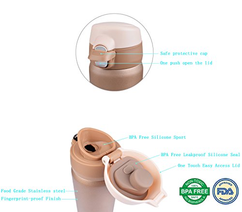 -. Brand : BUYNEED -. Feature : ➤ Retains Temperature For Up To 10 Hours: Vacuum-seal technology and double-wall construction ensure superior insulation for hot or cold liquids.Perfect for coffee or tea / ➤New Style design Better use, more convenient:Best Safe Lock Design Buttons Ensures Prevents Spills : You can turn it upside down, shake it up, roll it, the liquid will not spillage. / ➤ Food Grade Stainless Steel: polished durable Eco-friendly and 100% recyclable 18/8 (304) stainless steel material that won't rust and completed with advanced paint spraying innovation. Unbreakable stainless steel interior and exterior. / ➤ Wide mouth opening for easy cleaning and so you can add ice to keep your beverage cold. Compact design takes up minimal space while maximizing capacity for effortless transport and storage; stays cool to the touch with hot liquids and is condensation-free with cold / ➤ MONEY BACK GUARANTEE: We think you're going to love this vacuum flask as much as we do! But in case you don't, you are covered by our 30 day, no questions asked, money back guarantee. We want our customers to be 100% happy! -. Label : Buyneed -. Manufacturer : Buyneed -. PackageQuantity : 1 -. ProductGroup : Kitchen -. ProductTypeName : KITCHEN -. Publisher : Buyneed -. Studio : Buyneed -. Title : Insulated Stainless Steel Vacuum Flask Travel Mug , Compact Leak Proof Beverage Thermos Bottle,16 oz