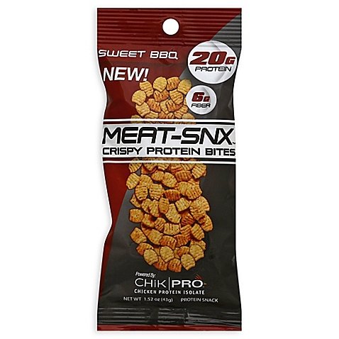 Meat-SNX Protein Bites are made with a special chicken-based protein isolate called Chik Pro, delivering a hefty dose of protein and fiber per serving. - Protein snack