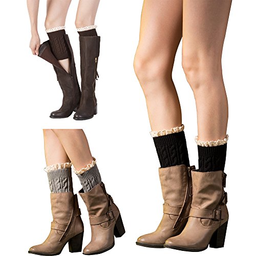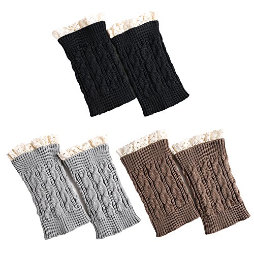 -. Title : 3 Pack Womens Boot Cuffs Topper Socks Knitting Crochet Winter Cable Short Leg Warmers